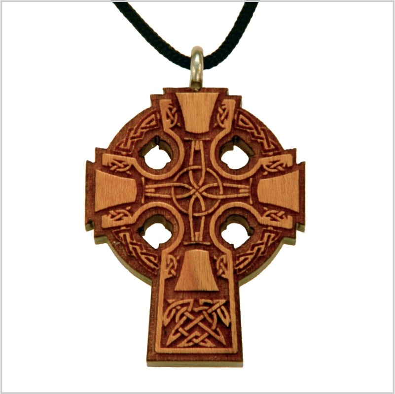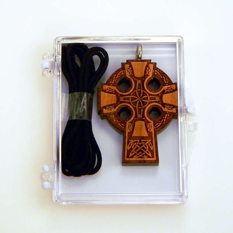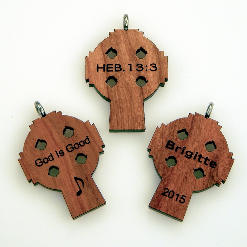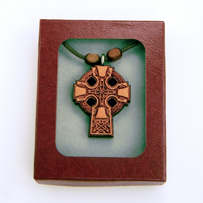 Fabriquée en bois de cerisier d’automne, cette croix en bois verni est gravée et coupée au laser.